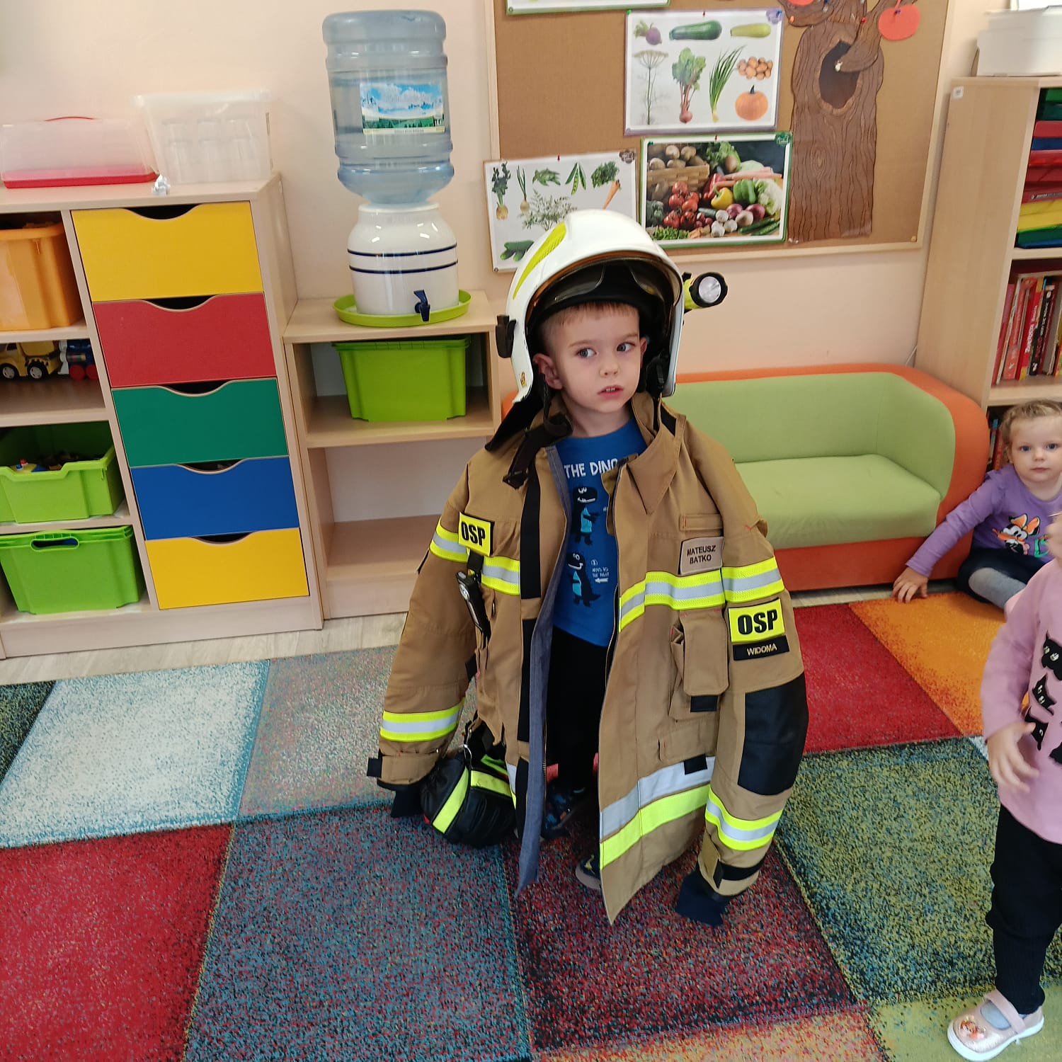 We wtorek 7 października, nasze przedszkole odwiedził wyjątkowy gość – pan Mateusz, strażak z Ochotniczej Straży Pożarnej,, a zarazem absolwent naszego przedszkola.